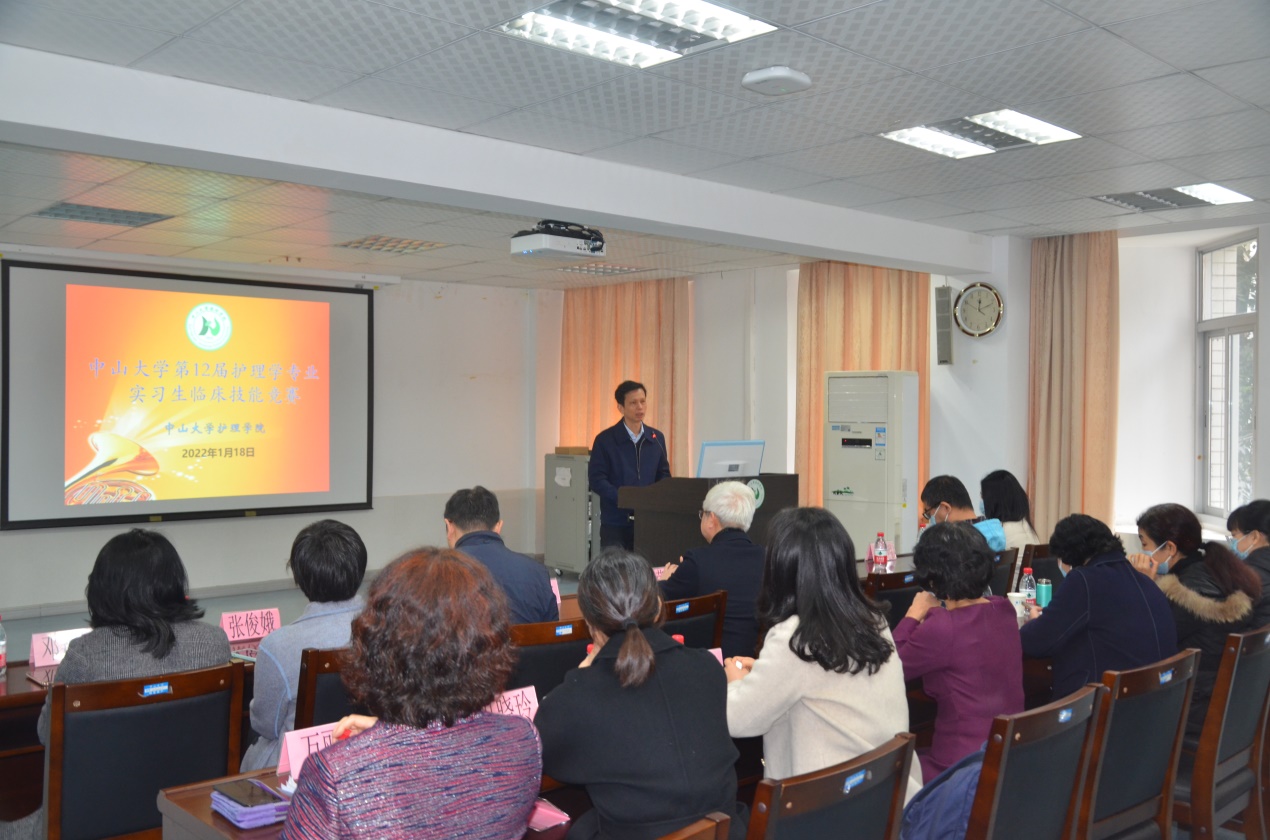 av国产 第12届护理学专业实习生临床技能大赛于2022年1月18日在av国产 护理技能教学中心举办。经过各附属医院初赛推荐,av国产 2018年级18位护理学专业实习生参加比赛。中山六院、肿瘤医院、眼科医院、口腔医院临床及护理专家出席了活动并担任评委。教务部黎尚荣副处长观摩了大赛并给予现场指导。